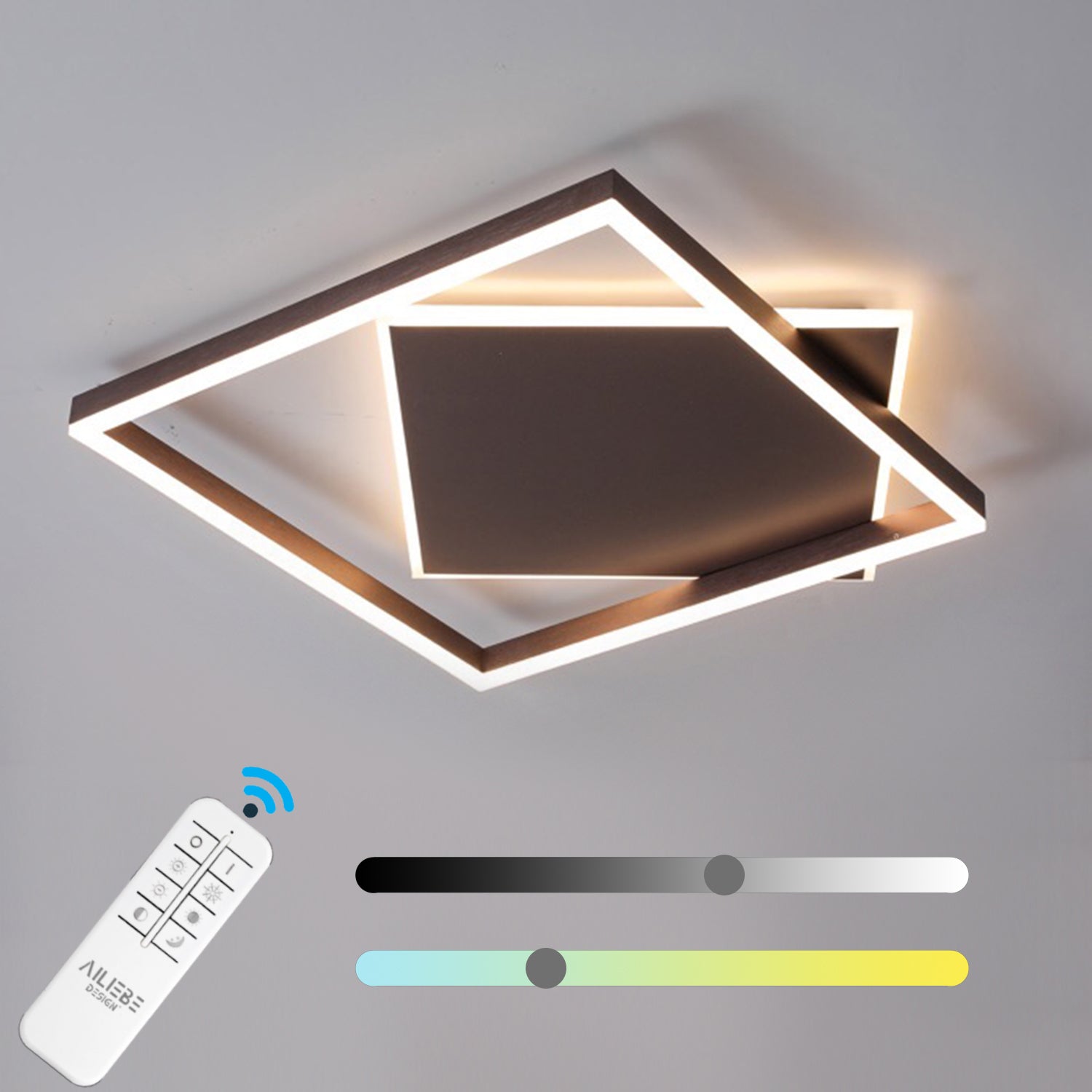 Ailiebe Design® LED-Deckenleuchte Dimmbar mit Fernbedienung Modern Quadratisch, Deckenlampe für Wohnzimmer Schlafzimmer Kinderzimmer Küche