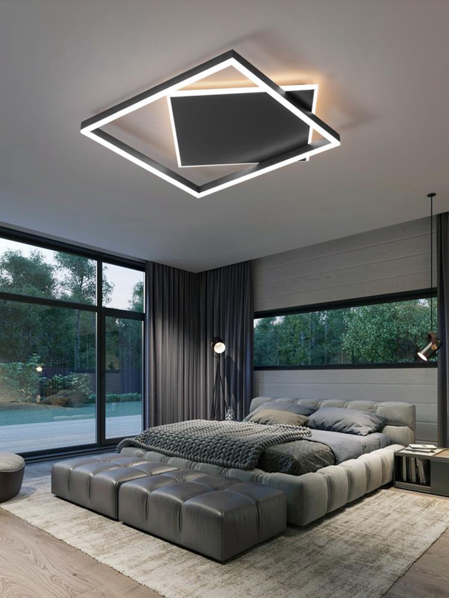Ailiebe Design® LED-Deckenleuchte Dimmbar mit Fernbedienung mit Memory Funktion Modern Quadratisch Schwarz ADLEDD028