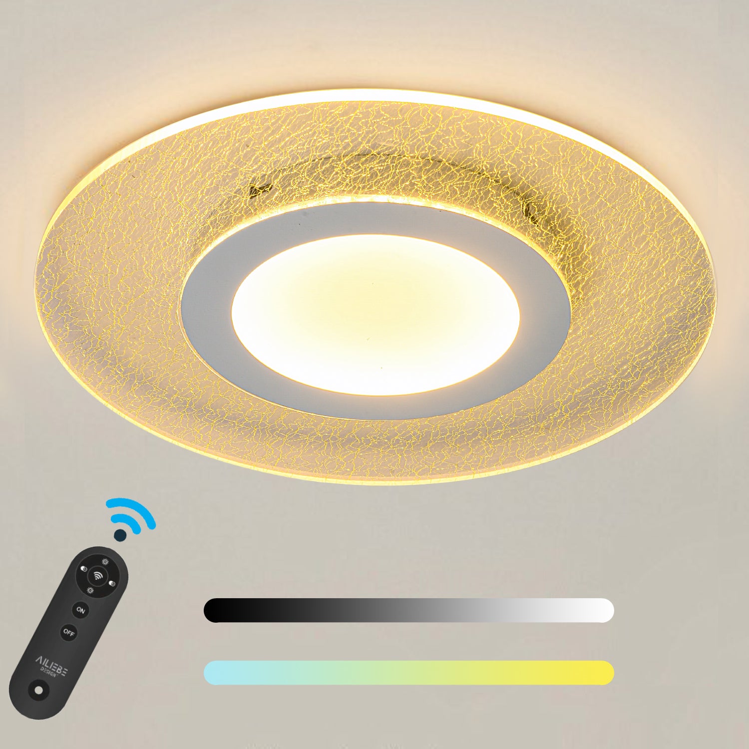 Ailiebe Design® LED-Deckenleuchte Dimmbar mit Fernbedienung mit Memory Funktion Modern Kreativ Elegant Durchmesser 46cm Rund Transparent AILIEBE020