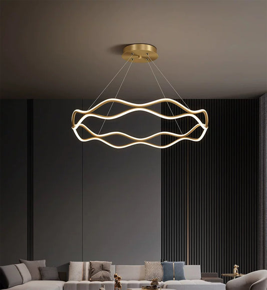 Ailiebe Design® LED Pendelleuchte Esstischlampe Deckenleuchte Dimmbar mit Fernbedienung mit Memory Funktion Durchmesser 40cm Höhe 40-120cm Verstellbar Goldfarbe Welle Krone ADLEDD022N