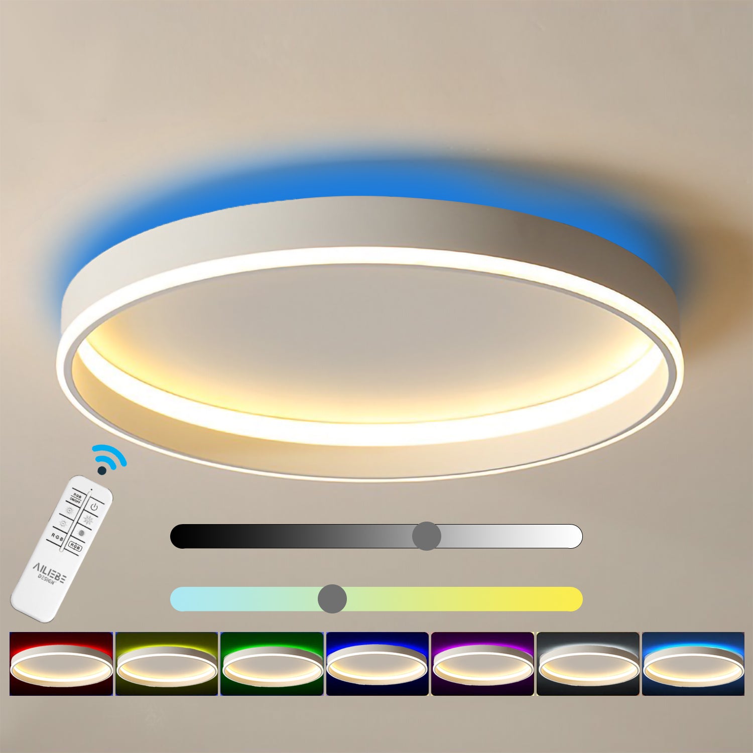 Ailiebe Design® LED Deckenleuchte RGB-Ambinte Farbwechsel Hintergrundbeleuchtung, Dimmbar mit Fernbedienung, Deckenlampe für Wohnzimmer Schlafzimmer Kinderzimmer Küche